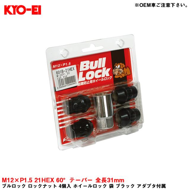 KYO-EI ブルロック ロックナット 4個入 ホイールロック 袋 ブラック アダプタ付属 M12×P1.5 21HEX 60°テーパー 全長31mm 601B