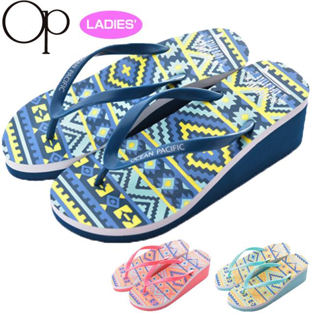 【均一SALE】アウトレット OP オーシャンパシフィック レディース ビーチサンダル ネイティブ柄 526930 ソール ヒール【新品】XAAQ ビーサン マリン プール 海水浴 サマー レジャー 女性用 水泳 スイム ビーチ ボード 厚底