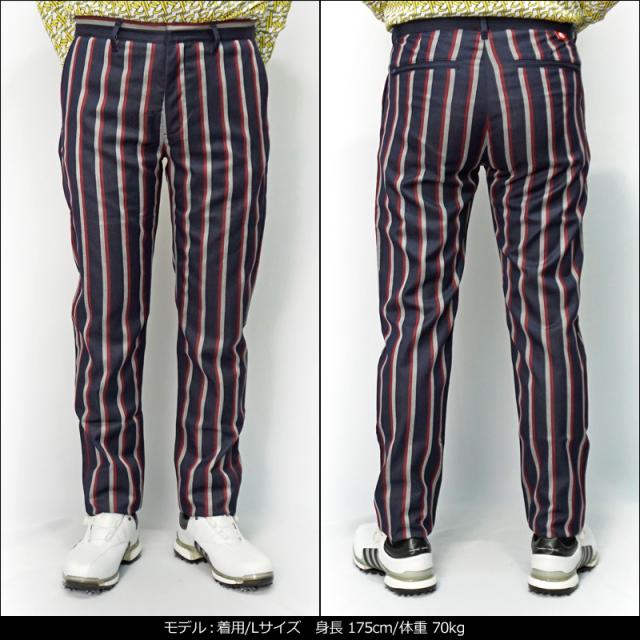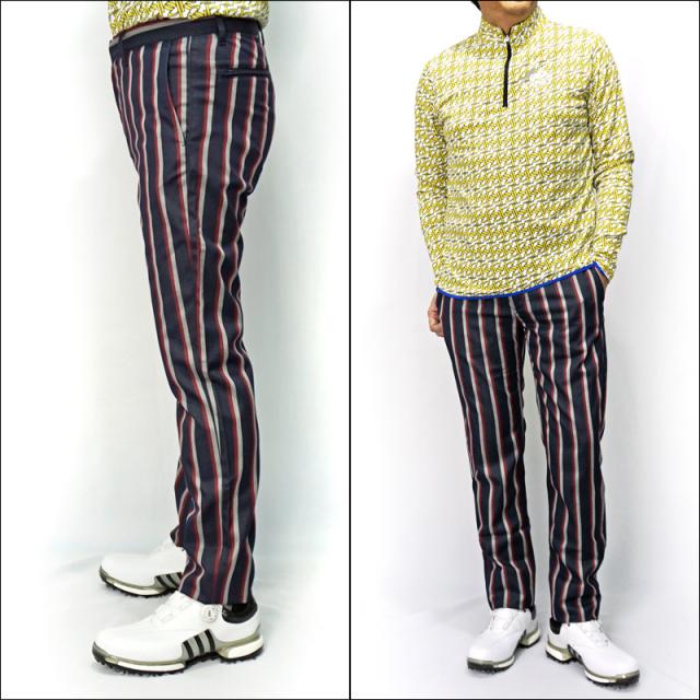 【均一SALE】カッパゴルフ ファッションデザイナー岩谷俊和氏コラボモデル ロングパンツ メンズ ストライプ柄 KC852PA22 ”Kappa G” Kappa Golf 【新品】YCBQ 秋冬 ゴルフウェア ボトムス