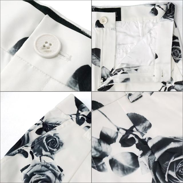 高いプリント技術で描かれた派手すぎないローズがボトムを鮮やかに引き立てます。