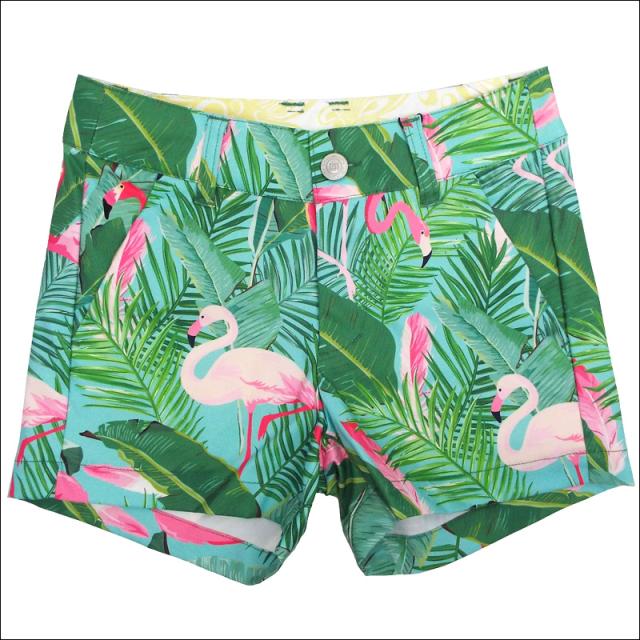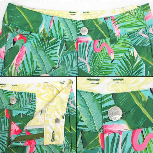 検索用1: Flamingo Grotto フラミンゴグロットフラミンゴ 鳥 南国 やし 葉っぱ 植物 プラント 自然 ネイチャー ボタニカル BOTANICAL 総柄 水色 ライトブルー 桃色 ピンク 緑色 グリーン マルチカラー 総柄 派手 派手な 柄 目立つ 個性的 やんちゃ 上品 ショーパン ミニパン ショートパンツ 半ズボン 短パン ボトムス ホットパンツ ミニパンツ ゴルフウエア ゴルフ レディースウエア レディースウェア ゴルフアパレル ゴルフファッション 女性用 レディス 春夏 春 夏