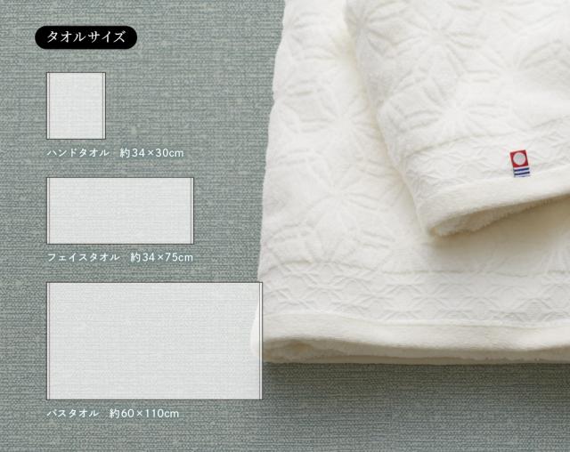 ●タオルサイズ:(バスタオル)約60×110cm、(フェイスタオル)約34×75cm、(ハンドタオル)約34×30cm