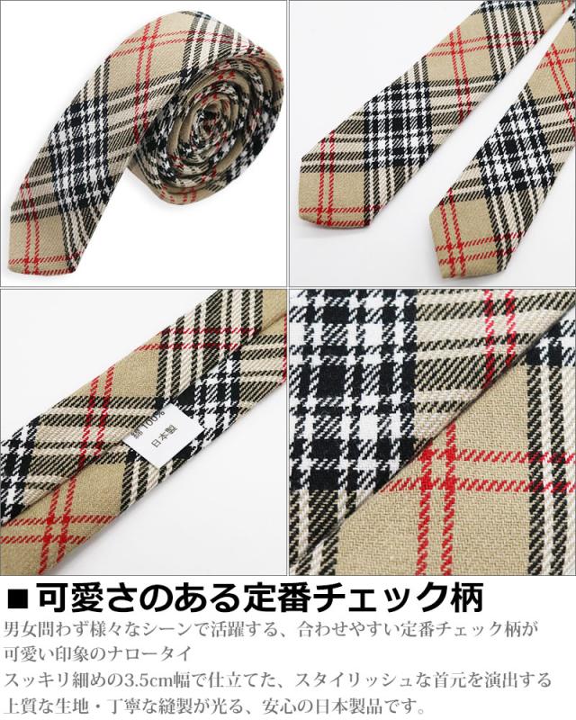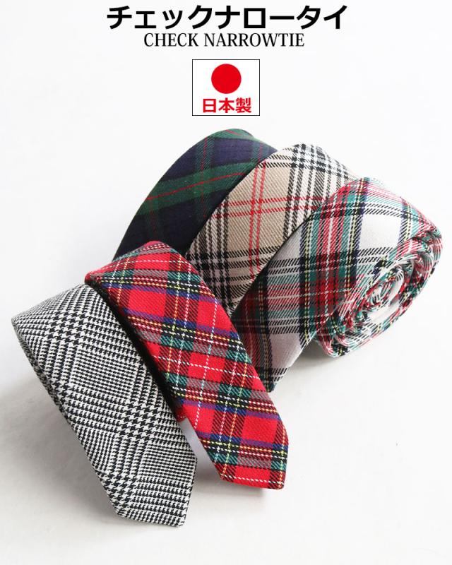 タータンチェック ナロータイ ネクタイ 日本製 3.5cm幅 細め 紳士 メンズ ビジネス ユニフォーム スリムタイ ネクタイ アメカジ