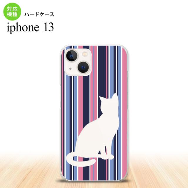 i13 iPhone13 ケース ハードケース 猫 ボーダー A 青ピンク iPhone13専用 スマホケース おしゃれ スマート シンプル nk-i13-965