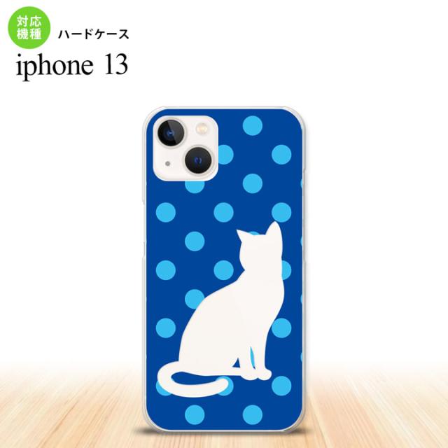 i13 iPhone13 ケース ハードケース 猫 水玉 青 水色