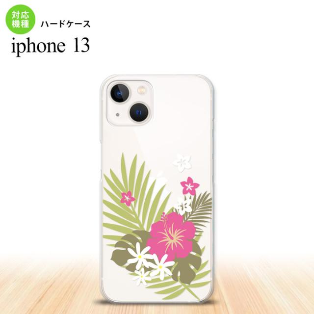 i13 iPhone13 ケース ハードケース ハイビスカス D クリア ピンク
