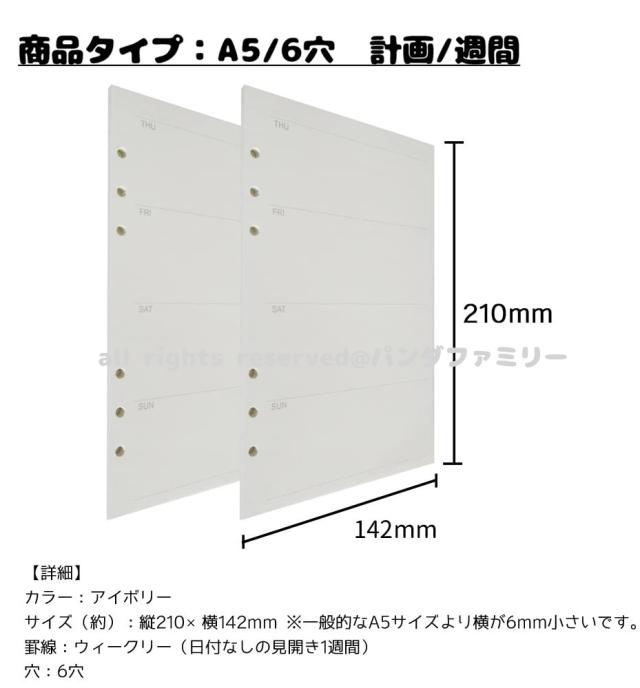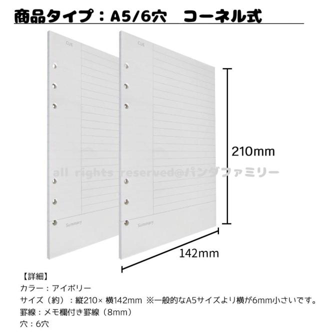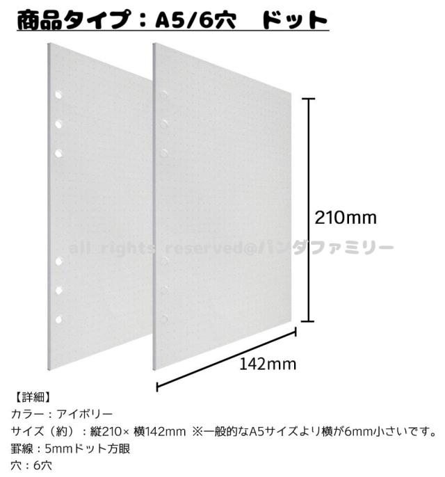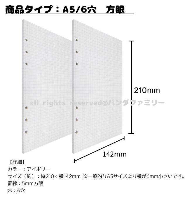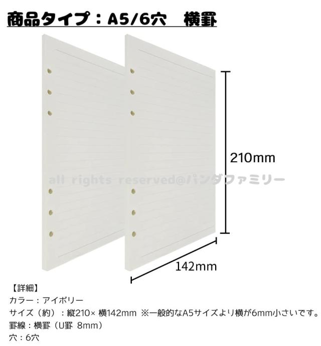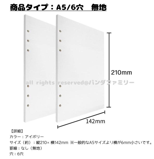 ※一般的なA5用紙よりも、横幅が6mm小さめです。
