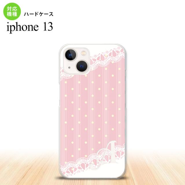 i13 iPhone13 ケース ハードケース ドット レース C 薄ピンク +アルファベット