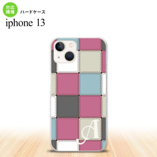 i13 iPhone13 ケース ハードケース パッチワーク ミックスB ピンク +アルファベット