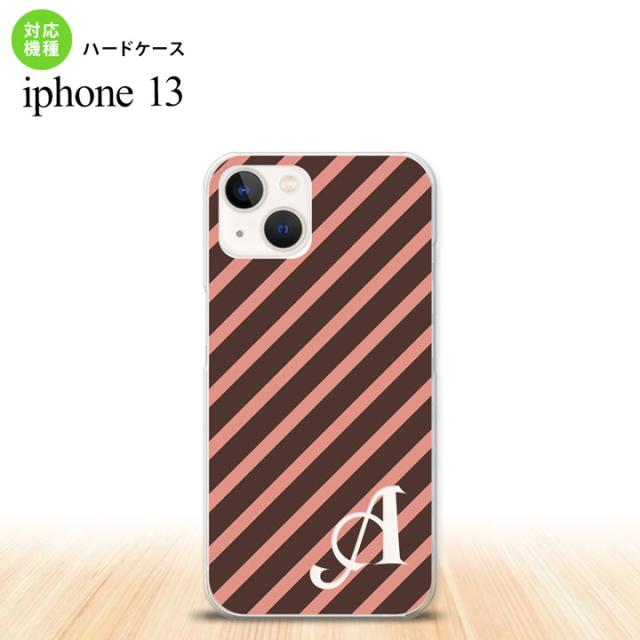 i13 iPhone13 ケース ハードケース ストライプ 茶 ピンク +アルファベット iPhone13専用 スマホケース おしゃれ スマート シンプル nk-i13-714i