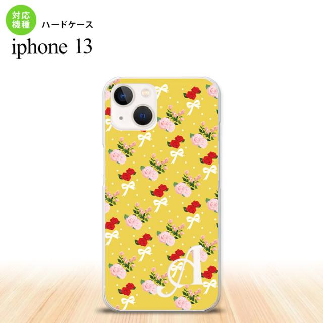 i13 iPhone13 ケース ハードケース 花柄 バラ リボン 黄 +アルファベット