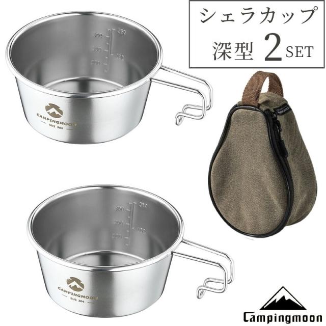 キャンピングムーン(CAMPING MOON) キャンプ用 コップ ステンレス シェラカップ 深型 360ml 2点セット S-360-2P+B