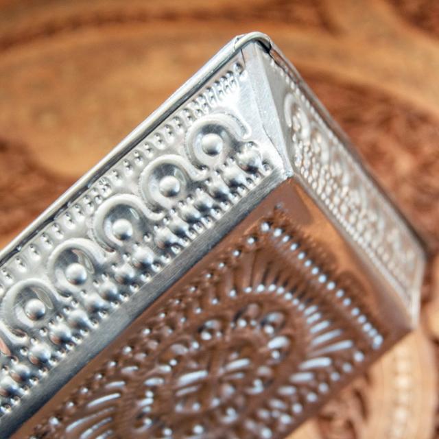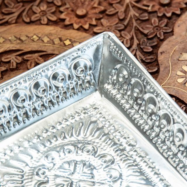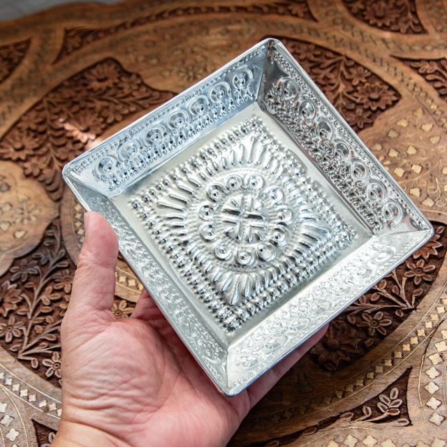 バリのアルミスクエアトレイ 手打ち細工が美しい 15.5cm x / 飾り皿 小物入れ アルミ皿 おぼん お盆 インド タイ プレート お供え アジアン食品 エスニック食材