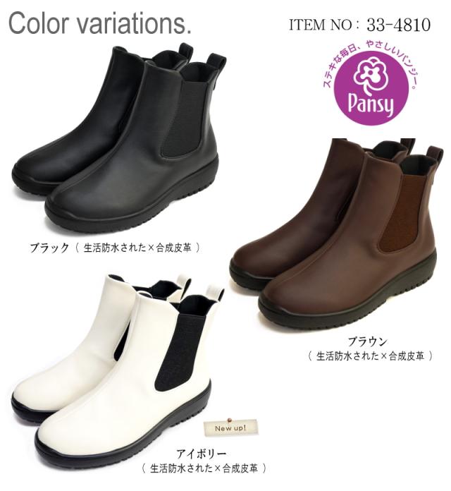 パンジー Pansy レインブーツ サイドゴア ショート丈 レディース 生活防水 撥水 抗菌 防臭 防滑 滑りにくい フラットソール ラウンドトゥ 軽量 グリップ 屈曲 3e 旅行