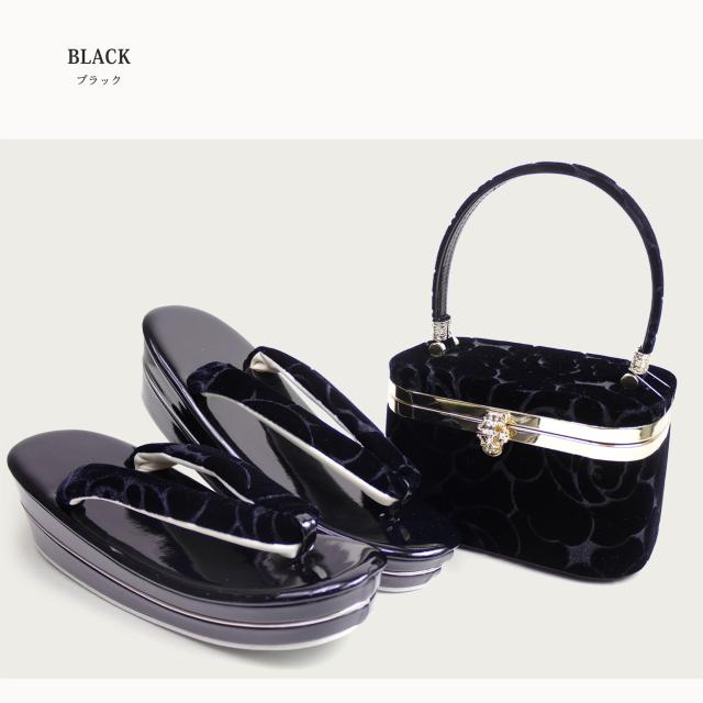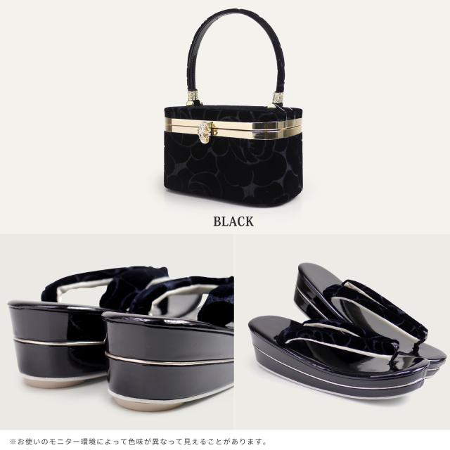 草履バッグセット ふんわりベロア 振袖用 コーデュロイ地 2枚芯 選べる4色 ブラック 黒 ホワイト 白 ワイン シルバー 小紋 立体生地 モノクロ 派手 個性的【フリーサイズ 24cm】【成人式 前撮り 卒業式 入学式 】 卒業袴 袴
