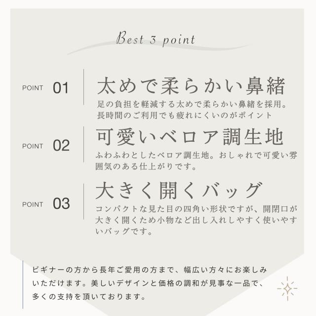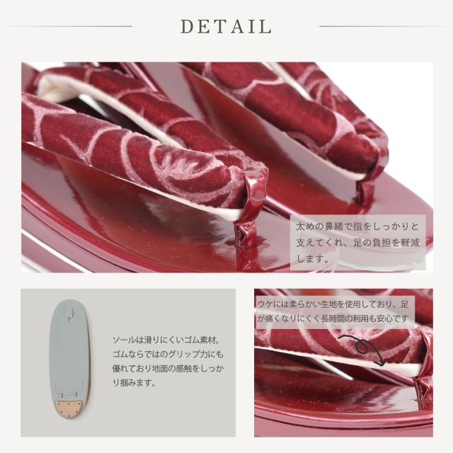 見た目だけでなく、草履には足に優しい厚手の鼻緒と2枚芯の台を採用しています。