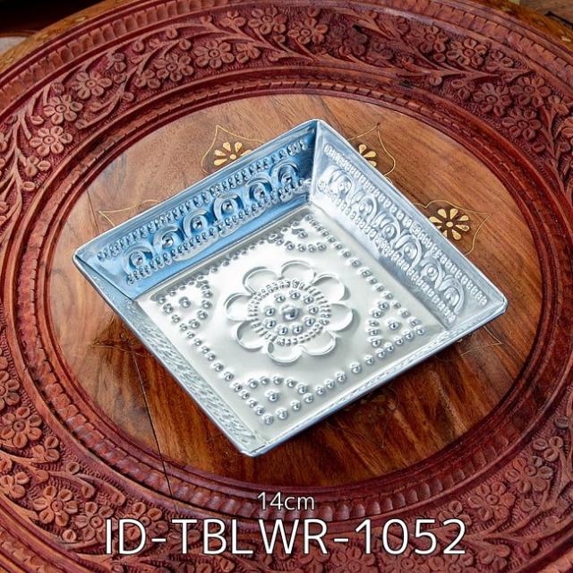 バリのアルミスクエアトレイ 手打ち細工が美しい - 14cm x 14cm(ID-TBLWR-1052)の写真です