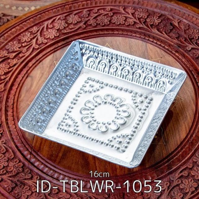バリのアルミスクエアトレイ 手打ち細工が美しい - 16cm x 16cm(ID-TBLWR-1053)の写真です