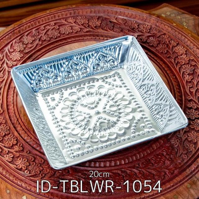 バリのアルミスクエアトレイ 手打ち細工が美しい - 20cm x 20cm(ID-TBLWR-1054)の写真です