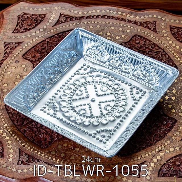 バリのアルミスクエアトレイ 手打ち細工が美しい - 24cm x 24cm(ID-TBLWR-1055)の写真です■セットでお得になっています