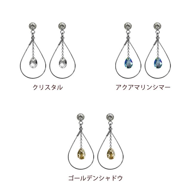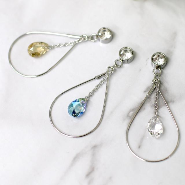 grace貼るピアス ティアドロップ×クリスタルガラス シルバー 選べるカラー 貼り替えテープ付き ノンホールピアス シールピアス 雫 シズク フープ リング クリスタルガラス 貼るだけ レディース ピアスシール 痛くない リフィルテープ 揺れるデザイン