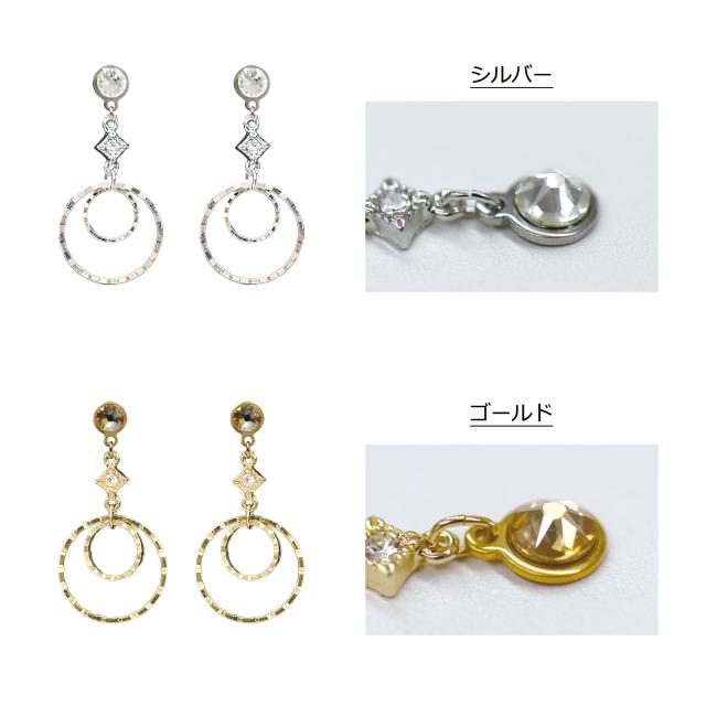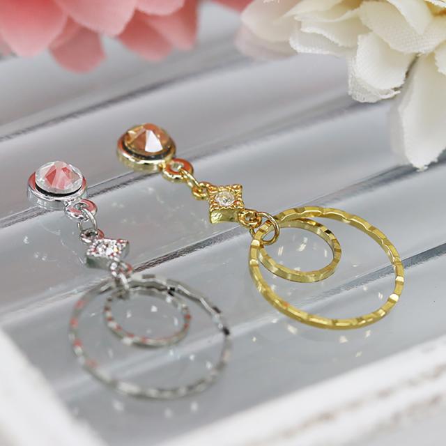 grace貼るピアス ダブルラウンドクリスタル ゴールド シルバー 貼り替えテープ付き ノンホールピアス シールピアス ダブルサークル メタルパーツ リング 貼るだけ レディース イヤリング 痛くない おしゃれ デザイン シンプル 金属アレルギー 貼る ピアス