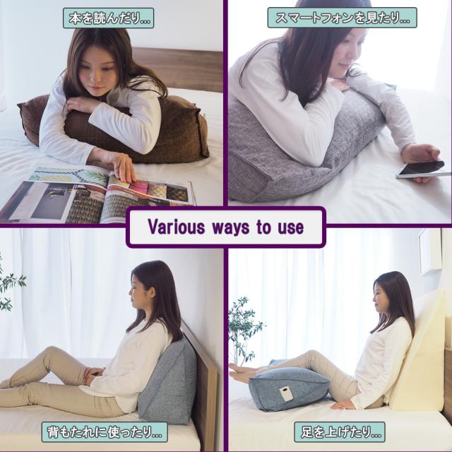 三角クッション ごろ寝足上げ ベッド 背もたれ 脚上げ 足上げ 寝返り 洗濯 足元クッション 3角クッション プレゼント用 グレー ブラウン ブルー