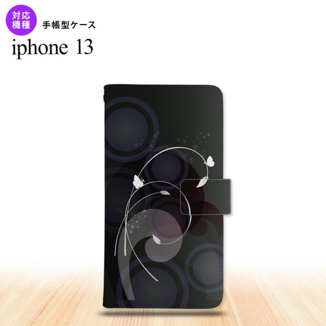 i13 iPhone13 手帳型スマホケース 全面印刷 バタフライ 蝶 黒 人気 おしゃれ スマート シンプル nk-004s-i13-dr204