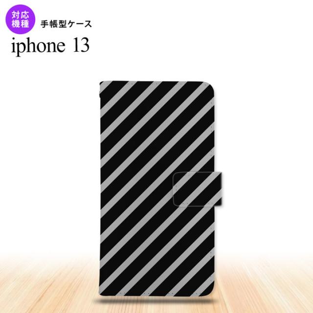 i13 iPhone13 手帳型スマホケース 全面印刷 ストライプ 黒 グレー 人気 おしゃれ スマート シンプル nk-004s-i13-dr712