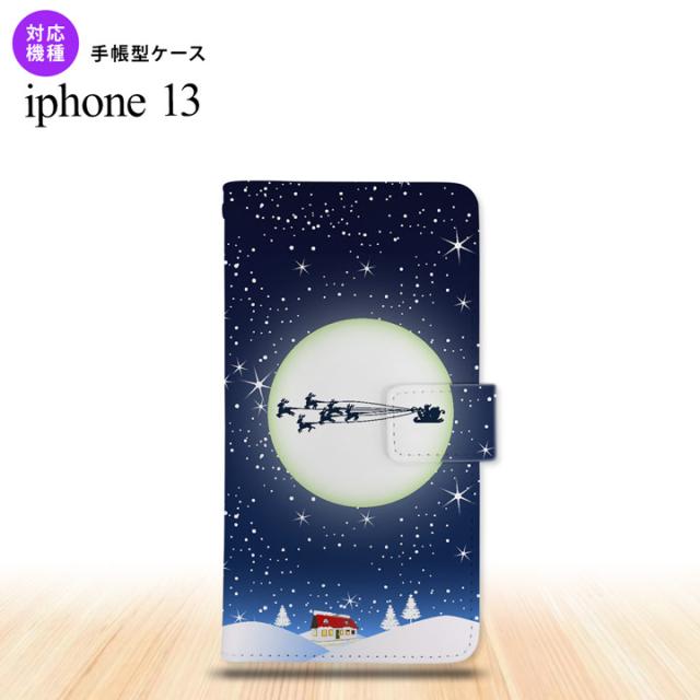 i13 iPhone13 手帳型スマホケース 全面印刷 クリスマス 青 人気 おしゃれ スマート シンプル nk-004s-i13-dr1003