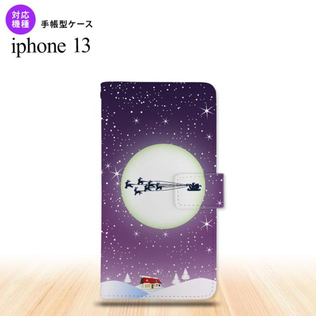 i13 iPhone13 手帳型スマホケース 全面印刷 クリスマス 紫 人気 おしゃれ スマート シンプル nk-004s-i13-dr1004