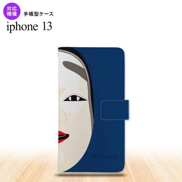 i13 iPhone13 手帳型スマホケース 全面印刷 能面 小面 青 人気 おしゃれ スマート シンプル nk-004s-i13-dr1042