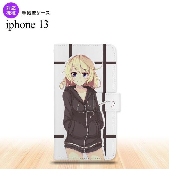 i13 iPhone13 手帳型スマホケース 全面印刷 女の子 キャラ 黒 人気 おしゃれ スマート シンプル nk-004s-i13-dr1328