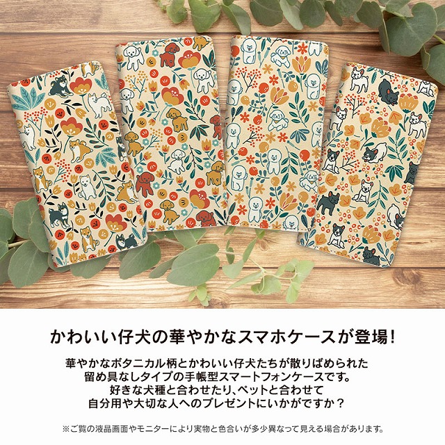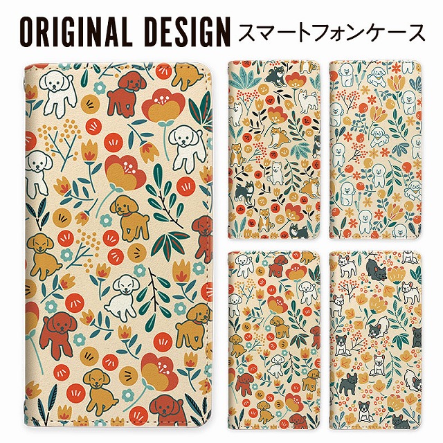 スマホケース 手帳型 ベルトなし フラワードッグ イヌ 花柄 マグネット マグ閉じ スタンド機能 スマホカバー 携帯ケース Pixel9a グーグルピクセル8a iPhone17 iPhone16e iPhone14 AQUOS sense10 sense9 Galaxy S25 A53 Xperia 10VII BASIO active3 多機種対応 送料無料