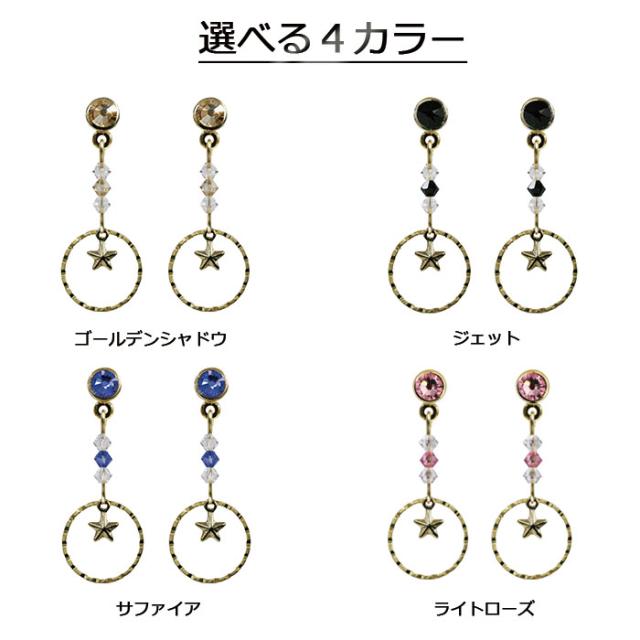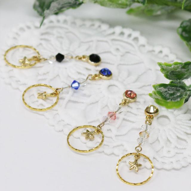 grace貼るピアス 3連ビーズ×サークルスター ゴールド 選べるカラー 貼り替えテープ付き ノンホールピアス シールピアス クリスタルガラス スター ビーズ 貼るだけ レディース ピアスシール 痛くない リフィルテープ 貼る ピアス 貼るピアス