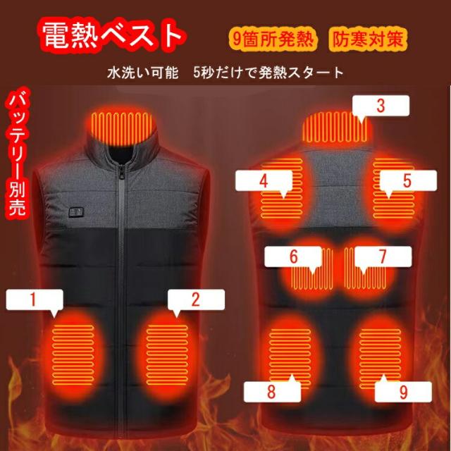 電熱ベスト ウェア 加熱ベスト 9エリア発熱 ヒーターベスト