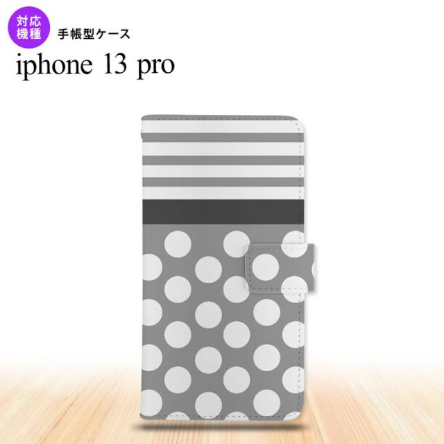 iPhone13 Pro iPhone13Pro 手帳型スマホケース カバー ドット ボーダー グレー iPhone13 Pro専用 nk-004s-i13p-dr781