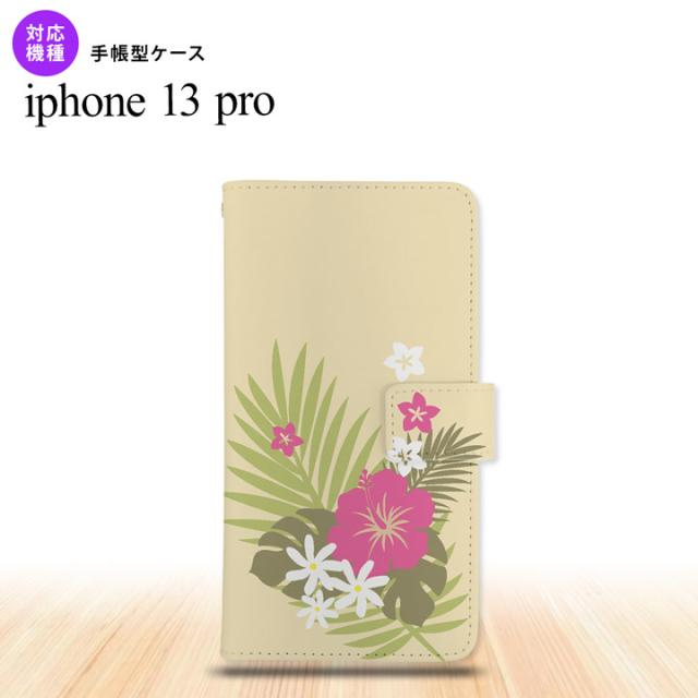 iPhone13 Pro iPhone13Pro 手帳型スマホケース カバー ハイビスカス ベージュ ピンク iPhone13 Pro専用 nk-004s-i13p-dr1053