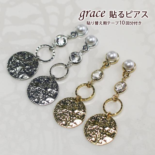 【grace貼るピアスとは?】専用テープで貼るだけ簡単ピアス! 穴が開いていなくても、金属アレルギーでも大丈夫。 痛みがなくおしゃれが楽しめます。grace貼るピアスのテープは安心の国内産医療用テープを採用しております。貼るピアスは専用テープがあれば繰り返しお使い頂けます。