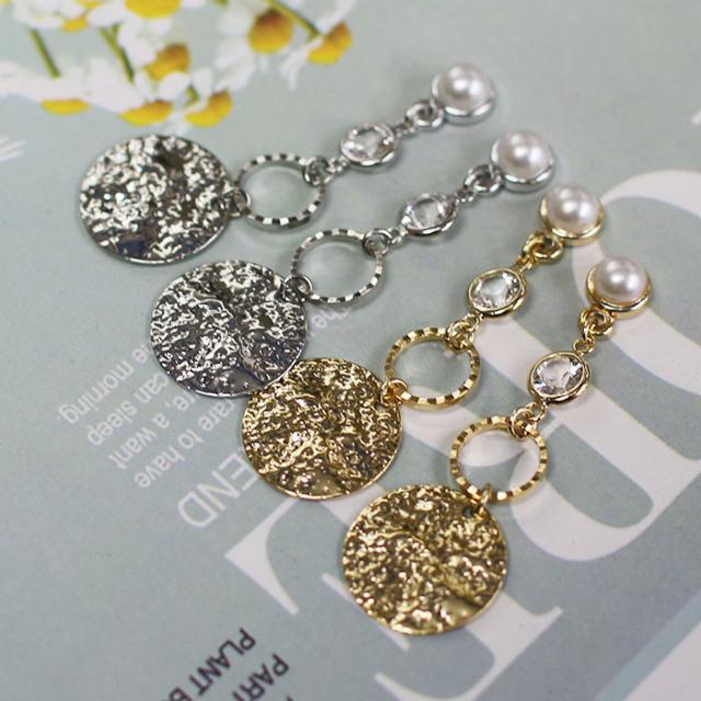 grace貼るピアス プレート×サークル 3連 ゴールド シルバー 貼り替えテープ付き ノンホールピアス シールピアス プレート リング メタルパーツ パール 円 貼るだけ レディース イヤリング 痛くない おしゃれ パールストーン 貼る ピアス