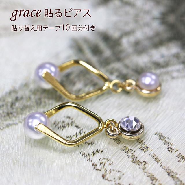 【grace貼るピアスとは?】専用テープで貼るだけ簡単ピアス! 穴が開いていなくても、金属アレルギーでも大丈夫。 痛みがなくおしゃれが楽しめます。grace貼るピアスのテープは安心の国内産医療用テープを採用しております。貼るピアスは専用テープがあれば繰り返しお使い頂けます。
