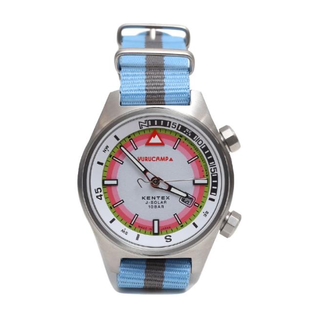 ゆるキャン△ 公式グッズ 野クル モデル 腕時計 ソーラー 方位計 日本製 キャンプウォッチ 電池交換不要 ソーラーウォッチ NATO ナイロン ベルト 水色 ゆるキャン ケンテックス アナログ キャンプ 家キャン