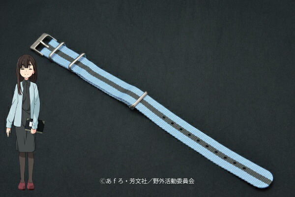 ▼ベルトは工具不要で着せ替えが可能なNATOベルトを採用。野クルの顧問でもある「グビ姉」こと、鳥羽先生をイメージした配色。