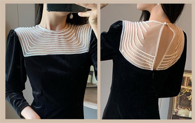 【送料無料】ドレス 大人 ピアノ 発表会 長袖 ベルベット イブニングドレス 演奏会 ピアノ発表会 パーティードレス ロングドレス ワンピース 女子会 謝恩会 二次会 フォーマル フェミニン 20代 30代 40代 韓国風 ブラック ファスナー