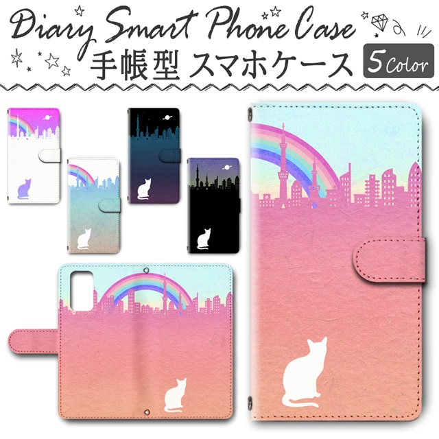 スマホケース スマホ ケース スマホカバー スマホ カバー 手帳型 Galaxy A82 5G SM-A826S 対応 送料無料 猫 虹 メルヘン ゆめかわいい ファンシー / dc-675