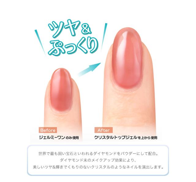ダイヤモンド末のメイクアップ効果により、美しいツヤ&輝きでくもりのないクリスタルのようなネイルを演出します。