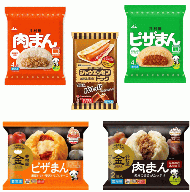 【冷凍】冷凍食品 5袋セット 井村屋 4コ入(肉まん・ピザまん)・2コ入(ゴールド肉まん・ピザまん) 日本ハム シャウエッセンドッグ 関東圏送料無料