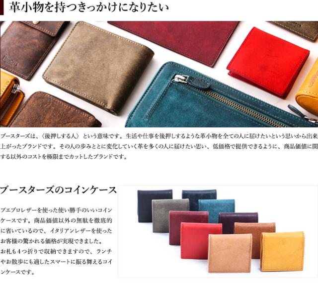 コインケース 名入れ ブースターズ 本革 革 コインケース メンズ BOX型 小銭入れ プエブロ 男性 Boosters 名前入り ブランド 誕生日プレゼント