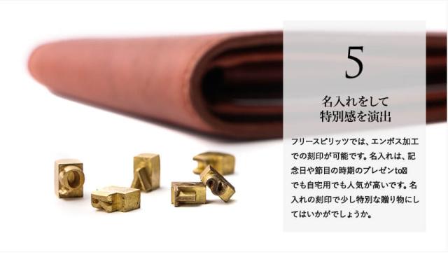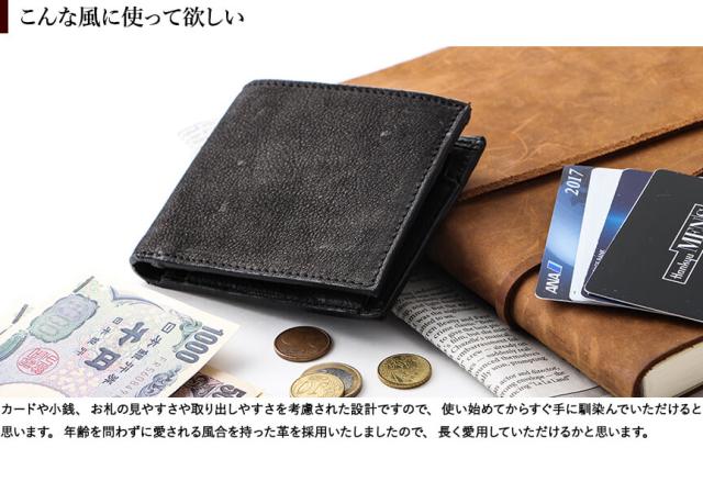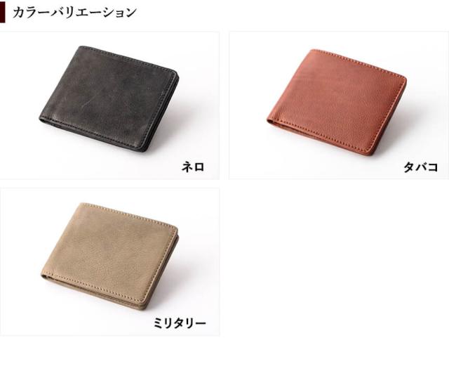 名入れができる本革の二つ折り財布。日常使いで便利です。
