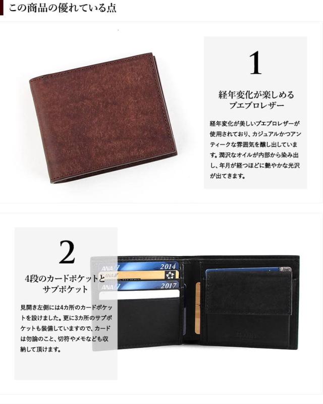 財布 二つ折り財布 メンズ レディース プレゼント 名入れ 名前入れ 無料 ギフト 本革 革 皮 レザー プエブロ 小さい財布 大容量 シンプル おしゃれ ブースターズ Boosters コンパクト財布 サイフ 小銭入れ付き 即日発送